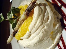 Meringue with passion fruit cream. Too sour for our liking.